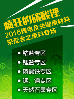 由于世界鋰資源主要集中在南美,中國占比不足2成,但對鋰鹽的需求方面,中國卻占到了50%以上,因此,國內(nèi)鋰鹽的產(chǎn)能情況也如10年前的鐵礦石一樣受制于人。隨著智利發(fā)生洪災(zāi)以及銀河資源的停產(chǎn),鋰鹽2015年的供應(yīng)更是捉襟見肘,并在2015年四季度表現(xiàn)的越發(fā)明顯。不過,隨著天齊、國鋰等企業(yè)的產(chǎn)能進一步擴充,預(yù)計在2016年二季度鋰鹽的產(chǎn)能問題會得到一定的解決。在市場前景一片大好而原材料受制的情況下,鋰電池正極材料及電解液企業(yè)都亟需解決鋰鹽的來源問題,為此,我們在2016年伊始之際召開此次鋰電及關(guān)鍵原材料采配會/技術(shù)交流會,在鋰鹽專區(qū)中,我們將探討鋰鹽的未來發(fā)展,并協(xié)助對接上下游企業(yè)。相聚長沙,鋰想有你!